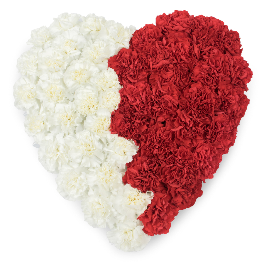 Express your deepest condolences with our sympathy carnation heart bouquet. This elegant arrangement combines fresh white and red carnations arranged in a beautiful heart shape, symbolizing love and remembrance.